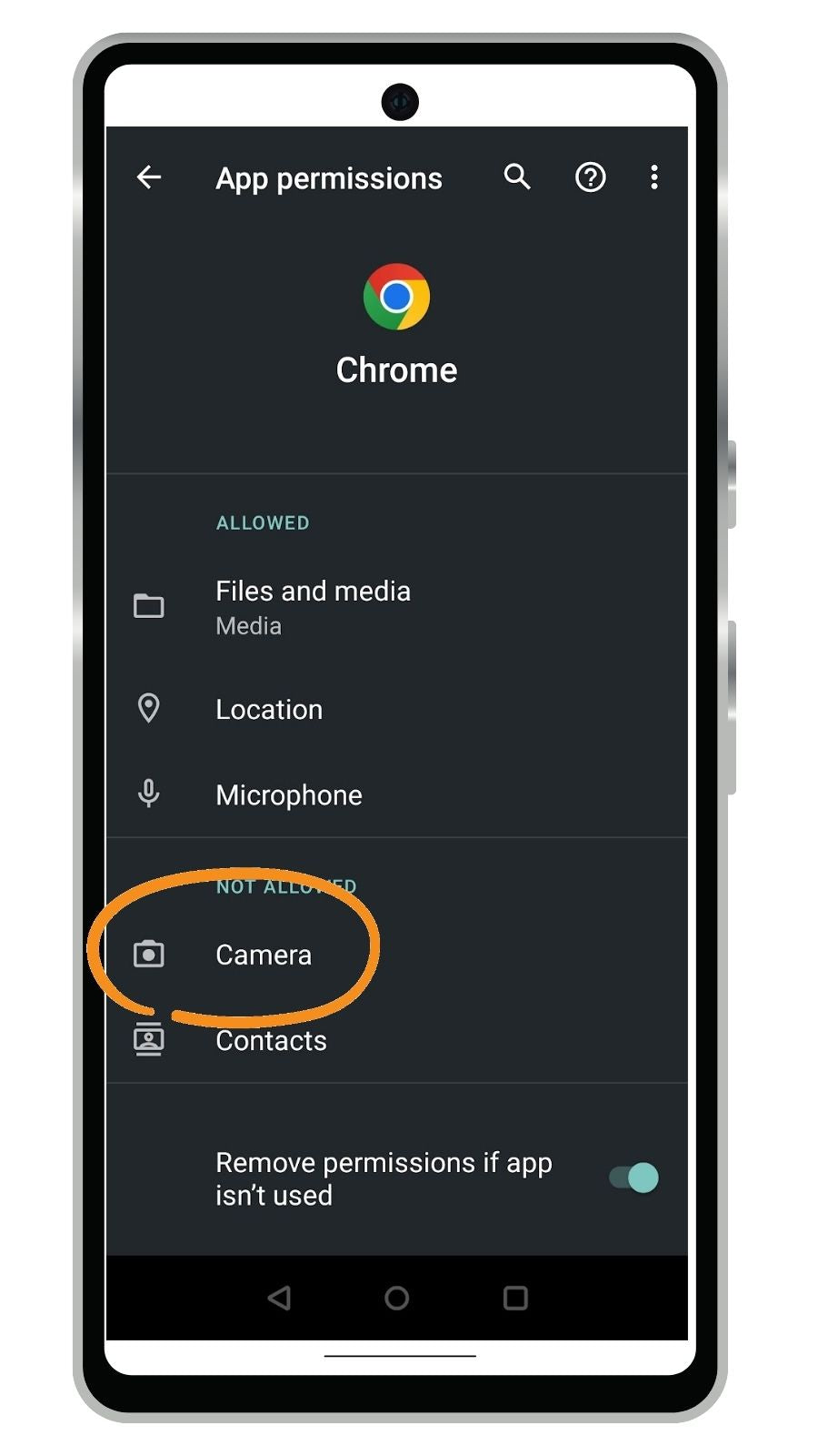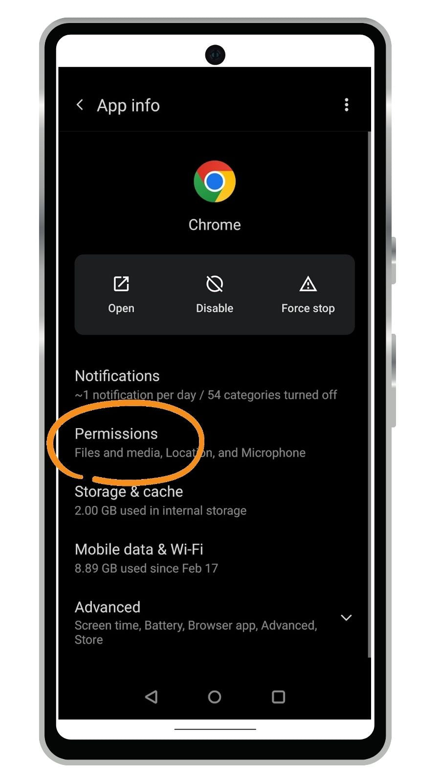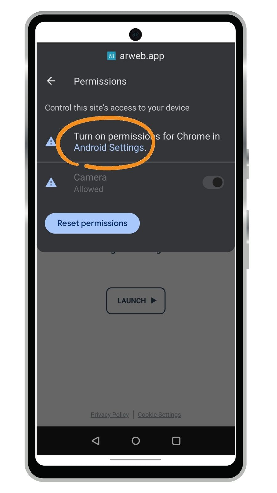 Turn on permissions for Chrome in Android Settings