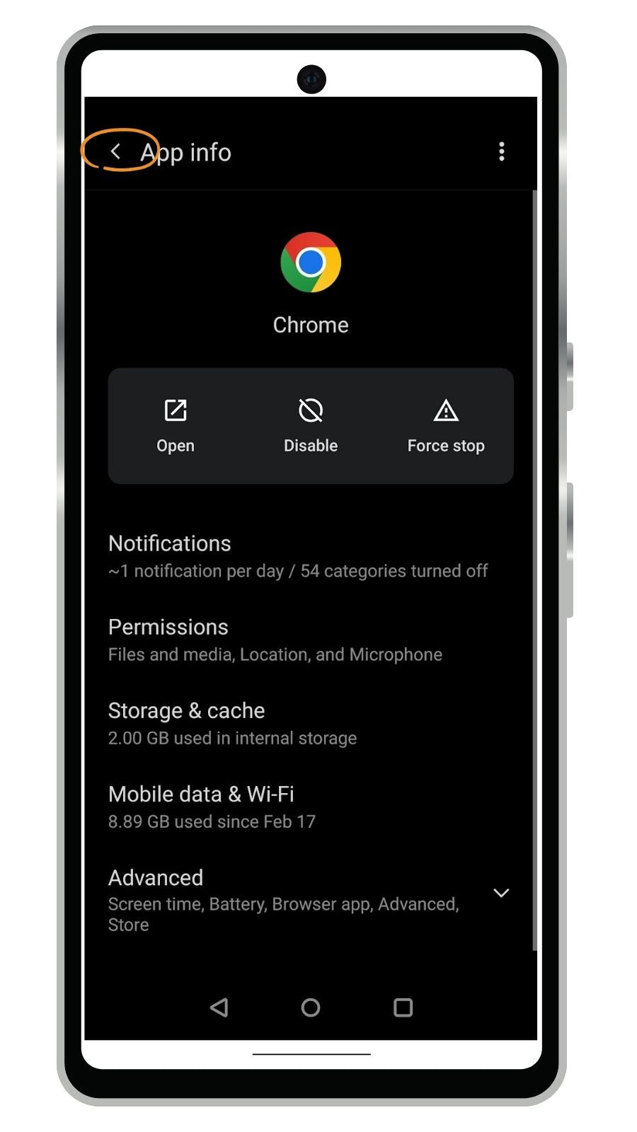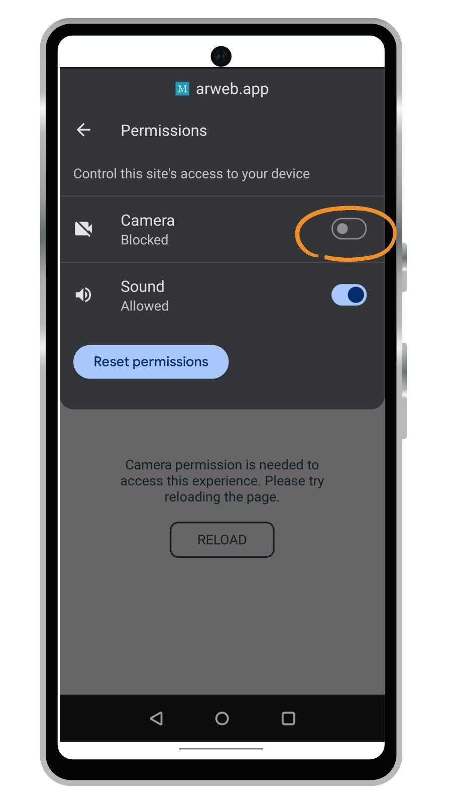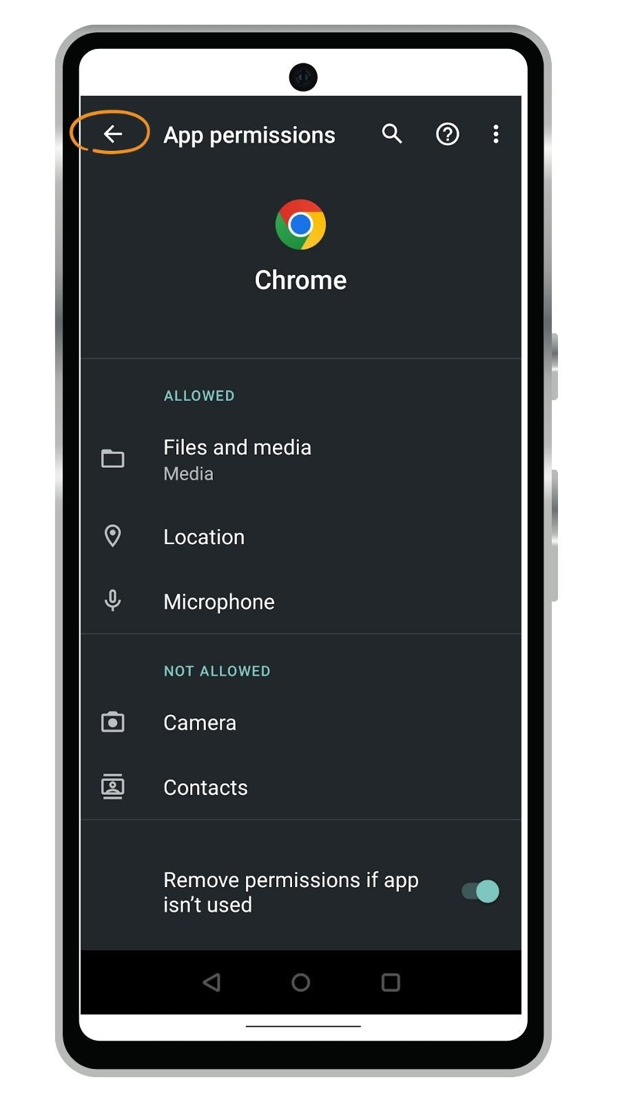 Turn on permissions for Chrome in Android Settings
