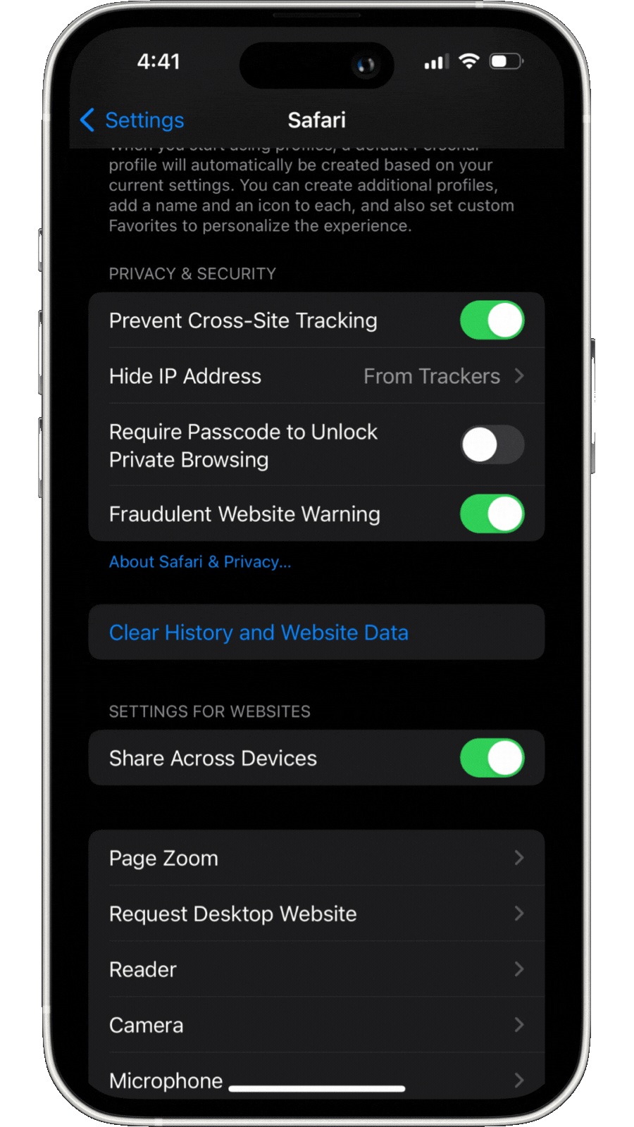 Open 'Settings' on your iPhone, scroll down and click 'Safari'.