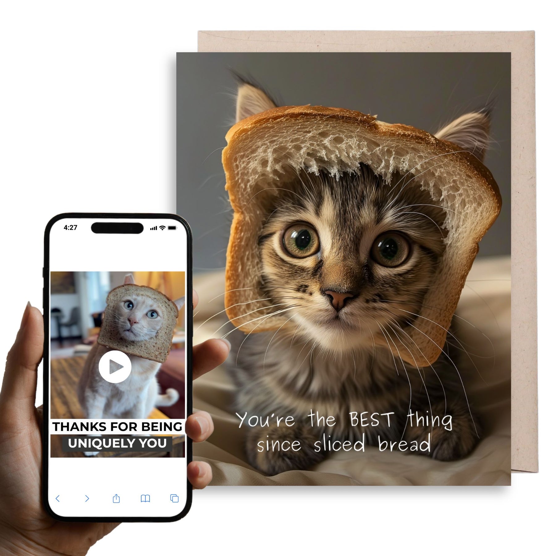 Cat lovers go crazy for this funny birthday card. See this card magically come to life and amaze your loved ones when it transforms into an adorable video of cats that could honestly care less that it's your birthday. However, spoiler alert, there are 2 adorable kittens that do care (a little).