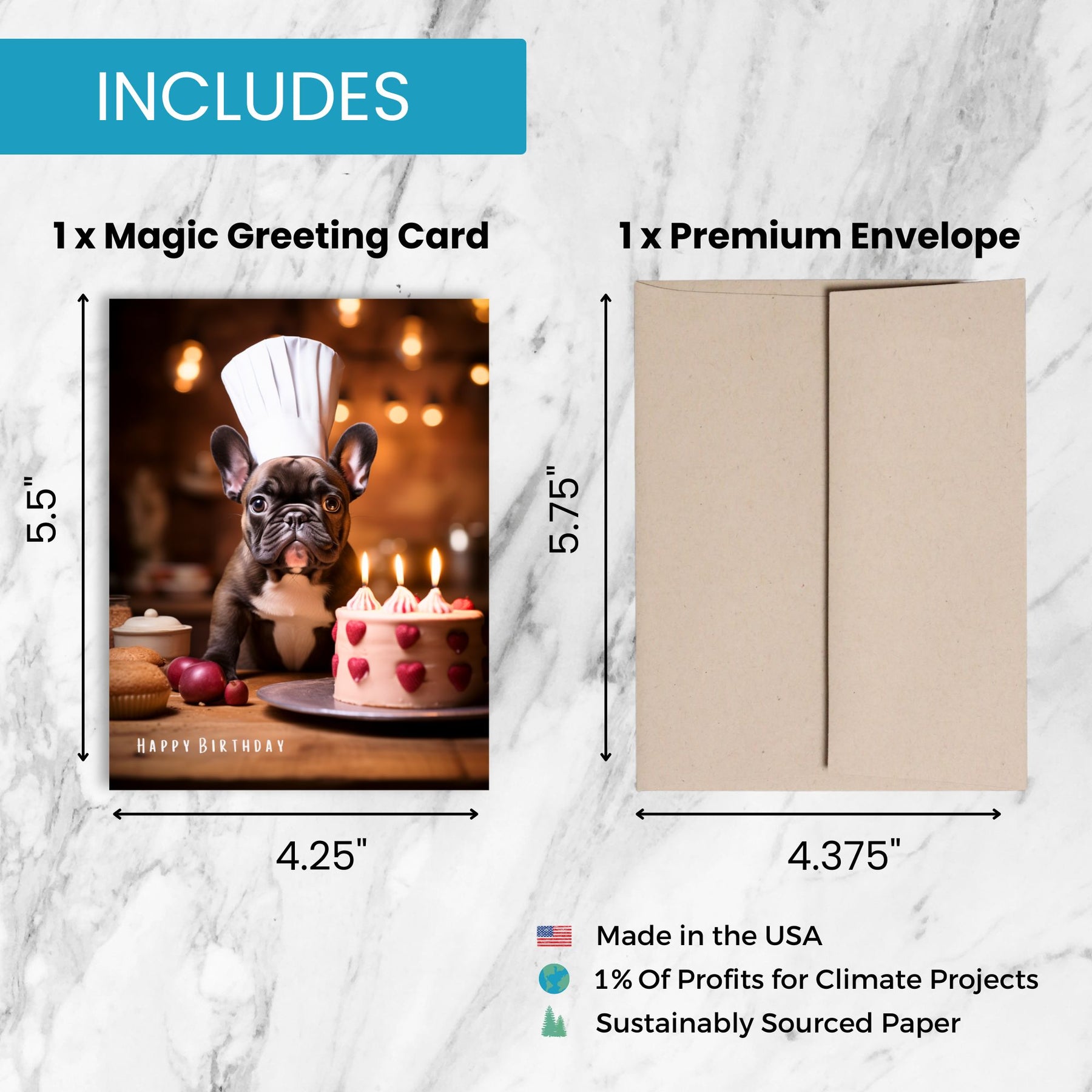 Meet our magic French Chef Dog birthday card, which magically comes to life to show charming French bulldogs preparing amazing desserts in a Parisian bakery! Ideal for French Bulldog lovers, kids, and anyone who loves a sweet surprise, and wants to have their cake and eat it too!